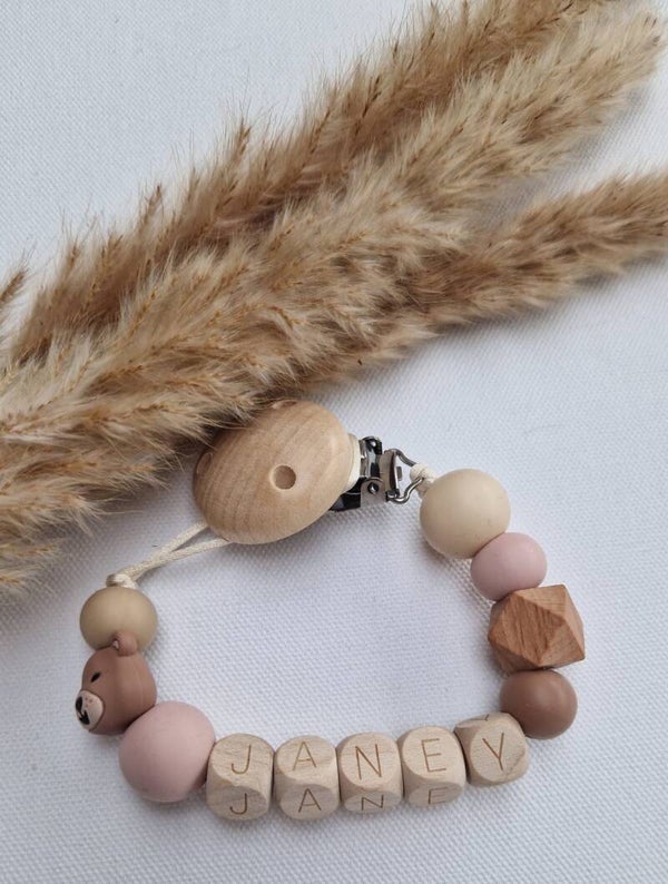 Maak het extra persoonlijk met onze speenkoord met naam- een musthave voor elke baby en ouder! Voor elk moment met dit schattige speenkoord met beertje!