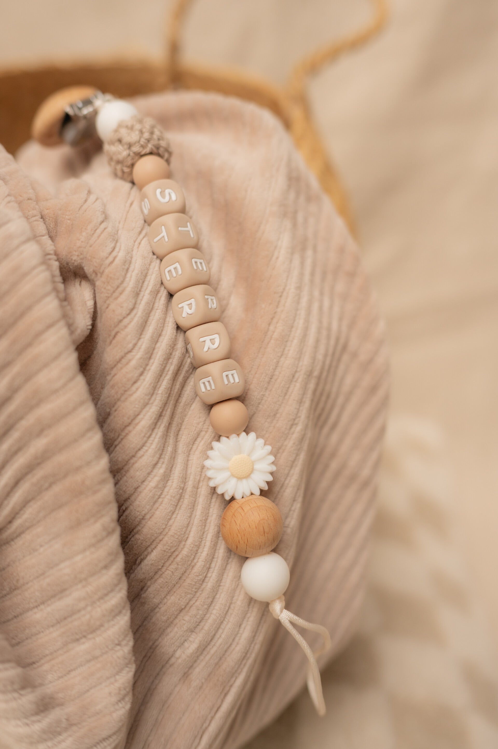 Een stijlvol speenkoord met naam. Praktisch, veilig en een mooie toevoeging voor je kleintje.